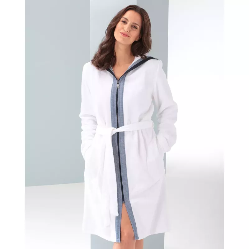 CAWÖ Kort Vit Morgonrock Dam med Huva & Dragkedja 6598