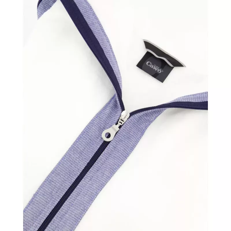 Den här mjuka morgonrocken för dam från CAWÖ har en huva och praktisk dragkedja. Det är en kort modell av 100% bomull. Det speciella med badrocken är dragkedjan som kan förslutas över hela huvan som ger den sitt särskilt trendigt utseende. Ett annat speciellt inslag är den blå kanten i stickad look, som dragkedjan är fäst på ett smidigt sätt i.