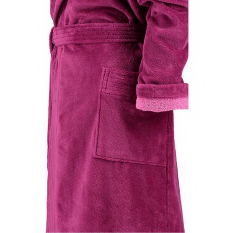 Lago by cawö Home 802-22 är en lätt extra fluffig dam morgonrock med huva i tidlös design. Badrocken i den härliga färgen beere har mycket god uppsugningsförmåga och en bekväm passform. En Cawö morgonrock av hög frotté kvalité som övertygar med ett elegant och fluffigt utseende och en lång livslängd till ett bra pris. Den är lätt att rengöra och lämplig för torktumlare.