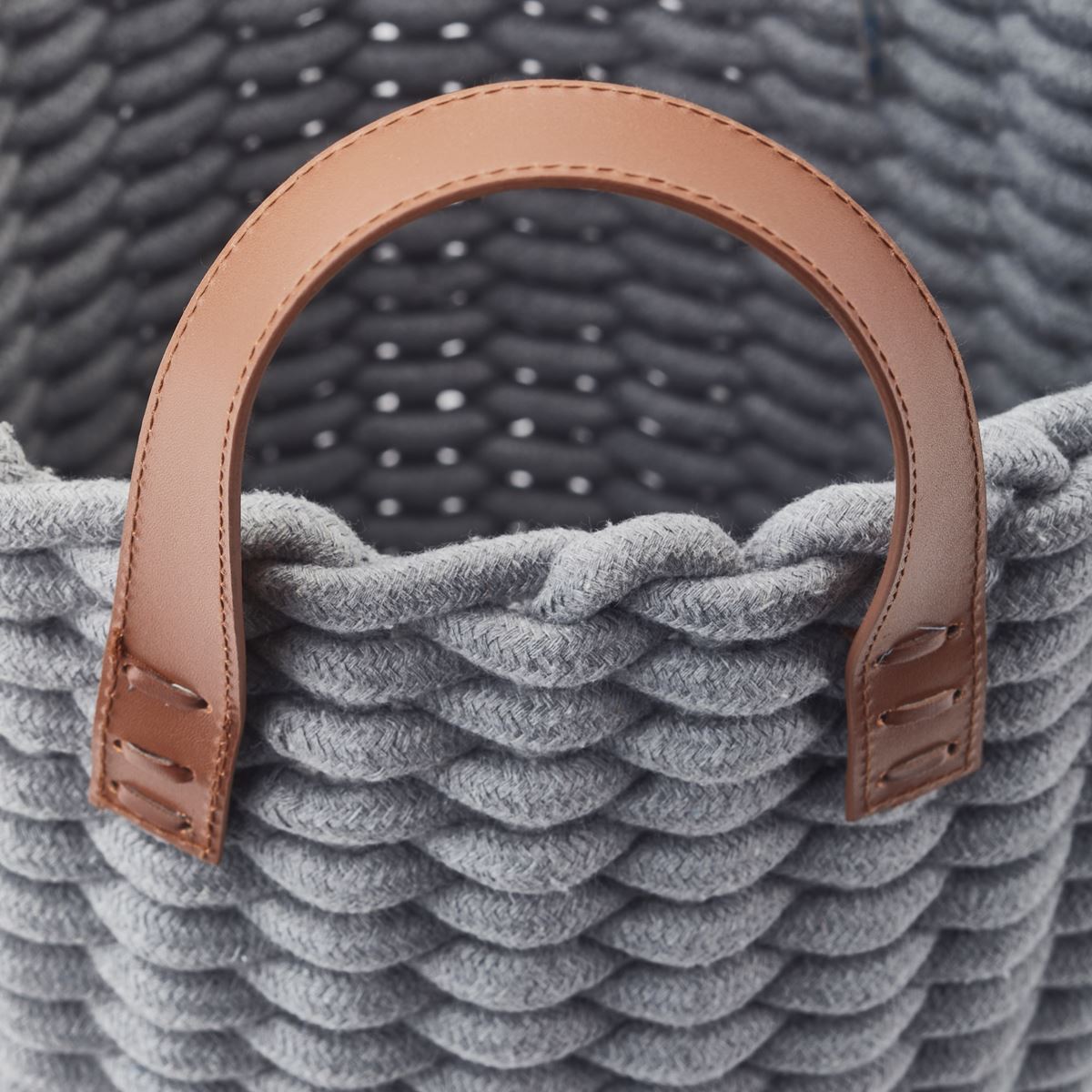 Tvättkorg Rudon från Aquanova är vävd och har en unik och stilren modern karaktär. Den är tillverkad av 50% bomull och 50% polyester samt dekorativa med läderhandtag. En mycket praktisk förvaringskorg som sätter en riktig touch till din inredningsstil. Tvättkorgen som har en kapacitet på 43 liter kommer som ett kompakt paket. Använd först händerna för att jämna ut botten. Då är det bäst att fylla korgen helt med textilier för att bilda en rund form. Slutligen, och om nödvändigt, använd ett varmt strykjärn för att göra ge korgen den perfekta formen.