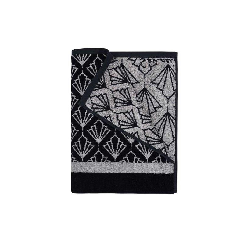 Mönstret på handduken är gjord med jacquardvävning, vilket innebär att mönstren vävs in i själva handduken i stället för att bara tryckas ovanpå. Detta gör handduken mer hållbar och motståndskraftig mot slitage.