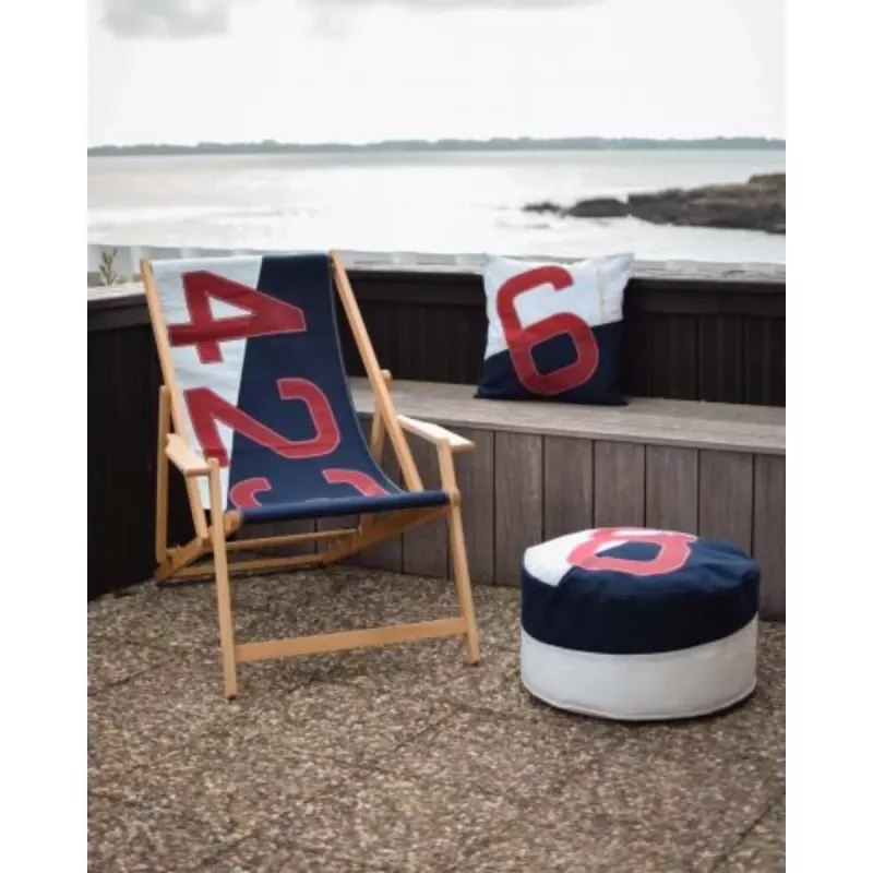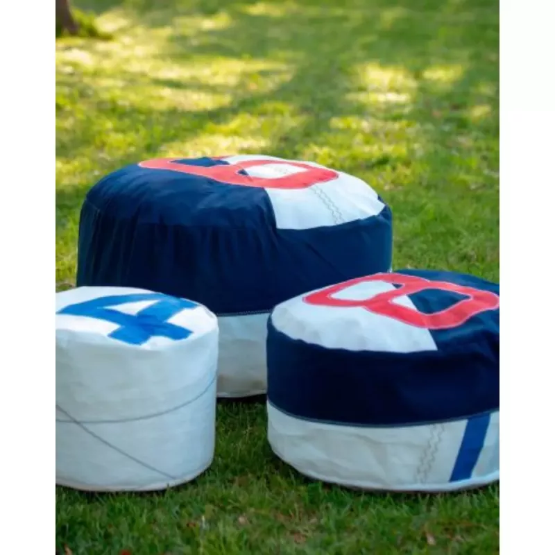 Sittpuff av återvunnet segel med maritim design