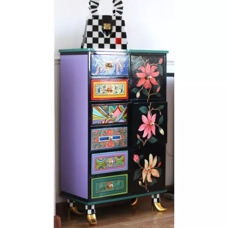 Toms Drag är känt för sitt unika uttryck och högkvalitativa hantverk. Varje möbel är handgjord och målad med kärlek till detaljer, vilket gör varje exemplar till ett konstverk i sig.