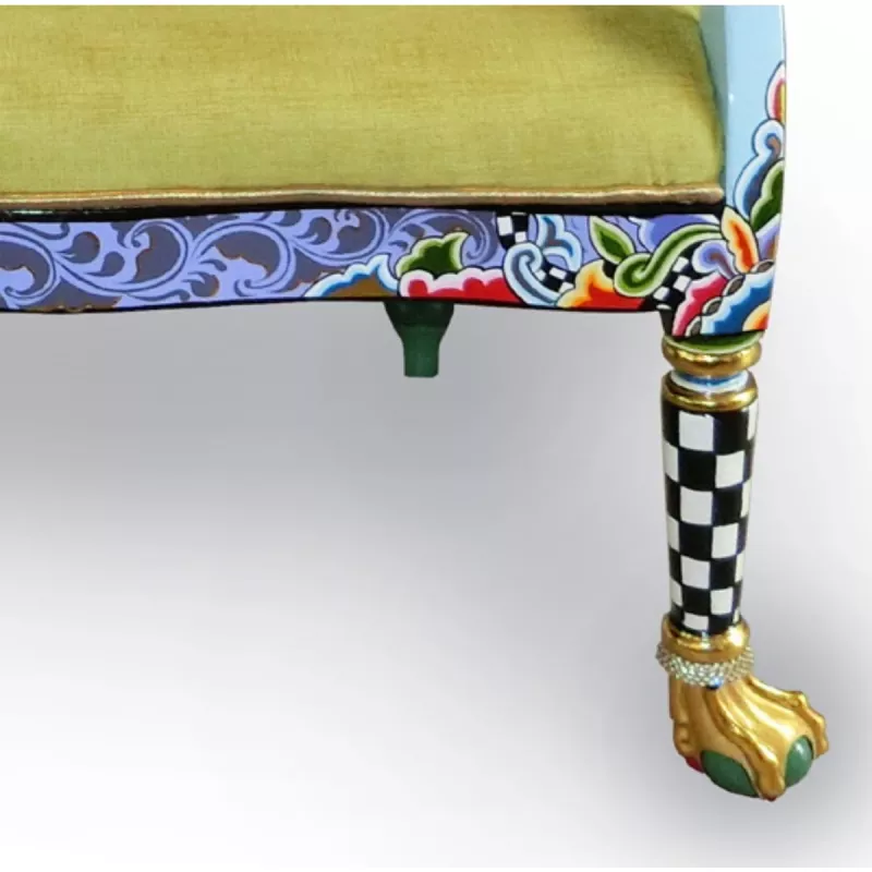 ✔ Exklusiva detaljer – Stolens ben är dekorerade med svartvita blockmönster och avslutas med gyllene klor för en lyxig touch.