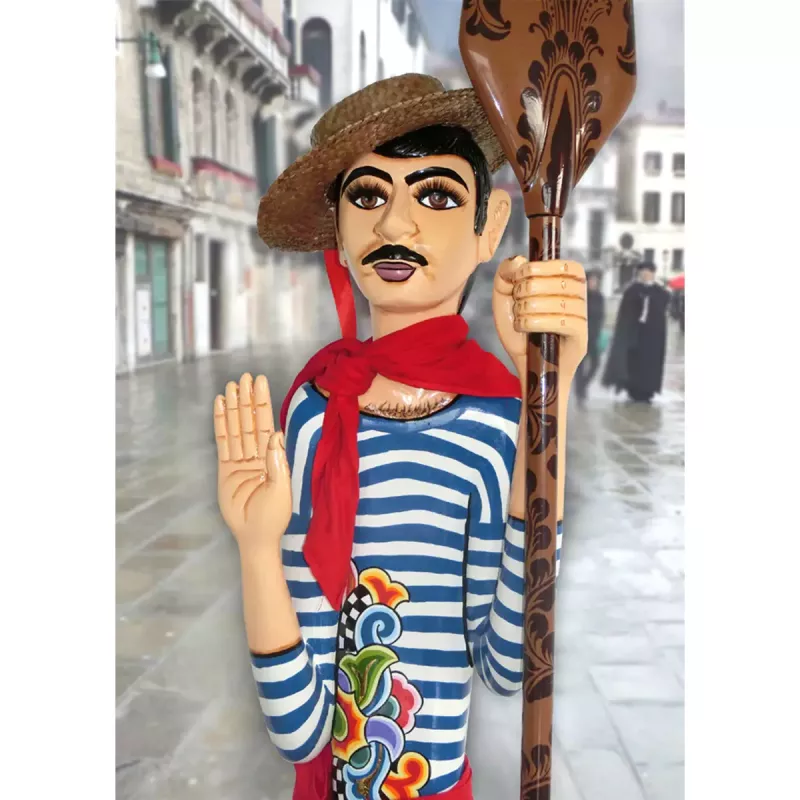 Denna imponerande gondoljärskulptur fungerar utmärkt i olika miljöer och blir en ikonisk dekoration: