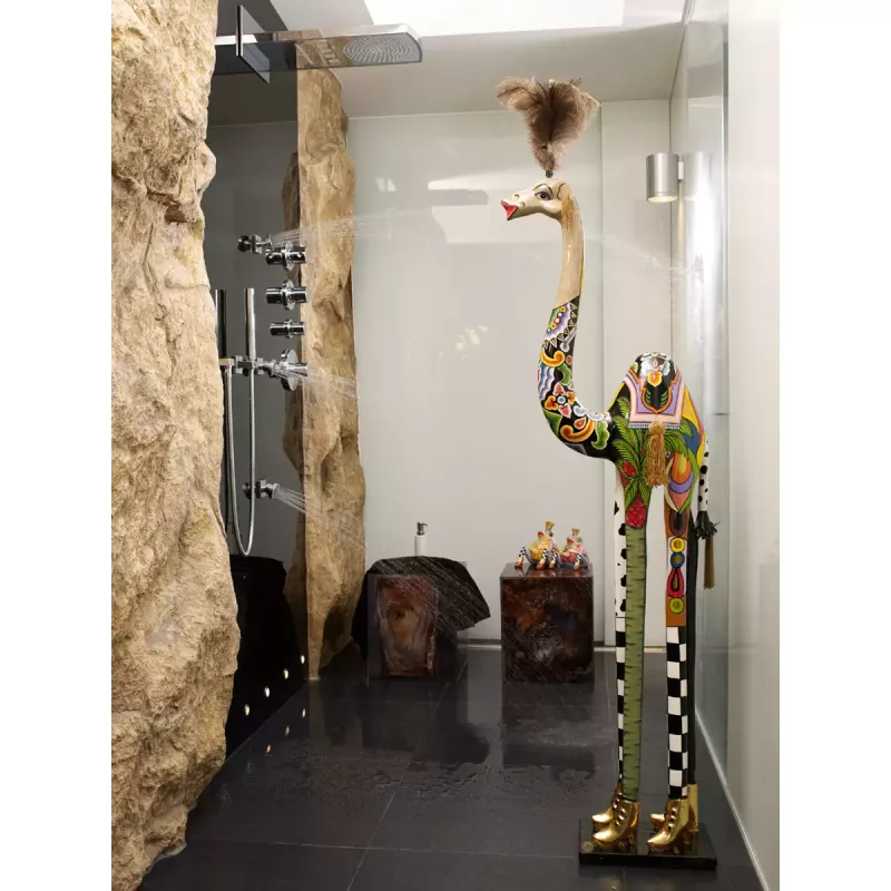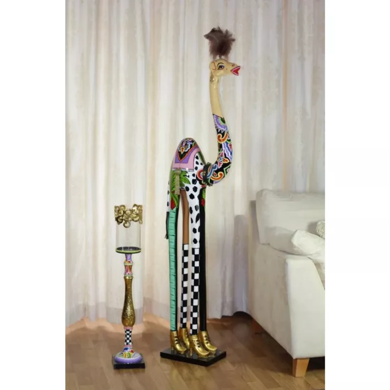 Handgjord och Färgstark Konstskulptur - Skapa en unik och livfull atmosfär i ditt hem eller kontor med Toms Drag Kamel Laila 101774 – en imponerande, 177 cm hög skulptur som blir ett riktigt blickfång. Med sina livliga färger, humoristiska detaljer och exklusiva design, är denna handgjorda konstfigur den perfekta möbeln för den som älskar extravagant och lekfull inredning.