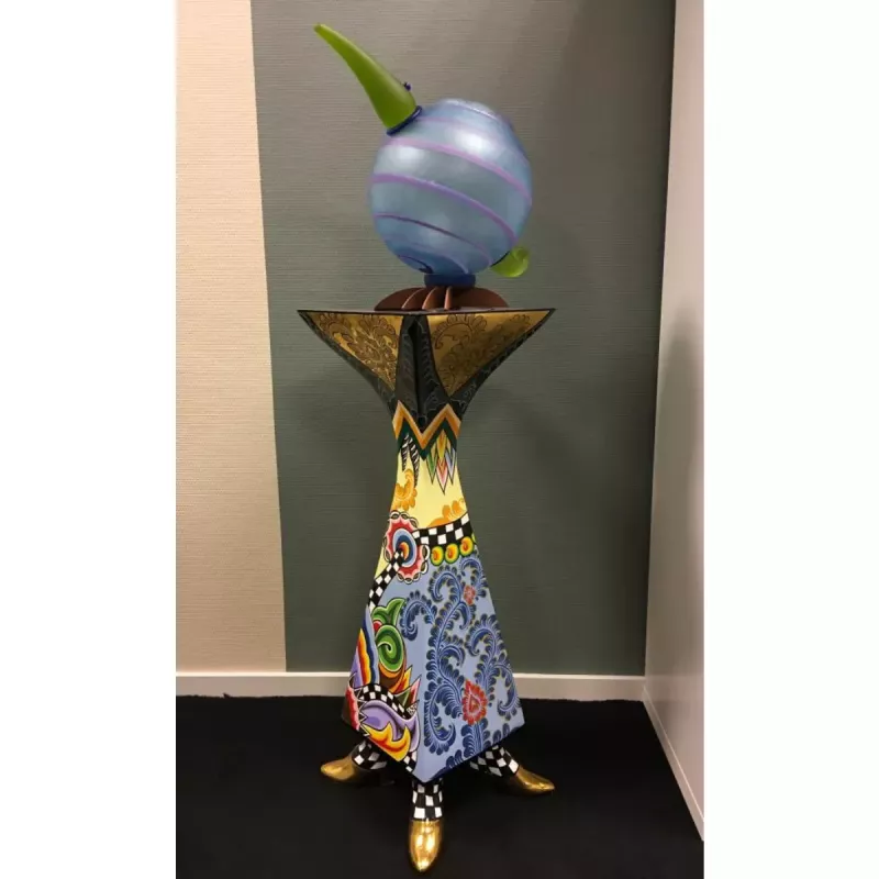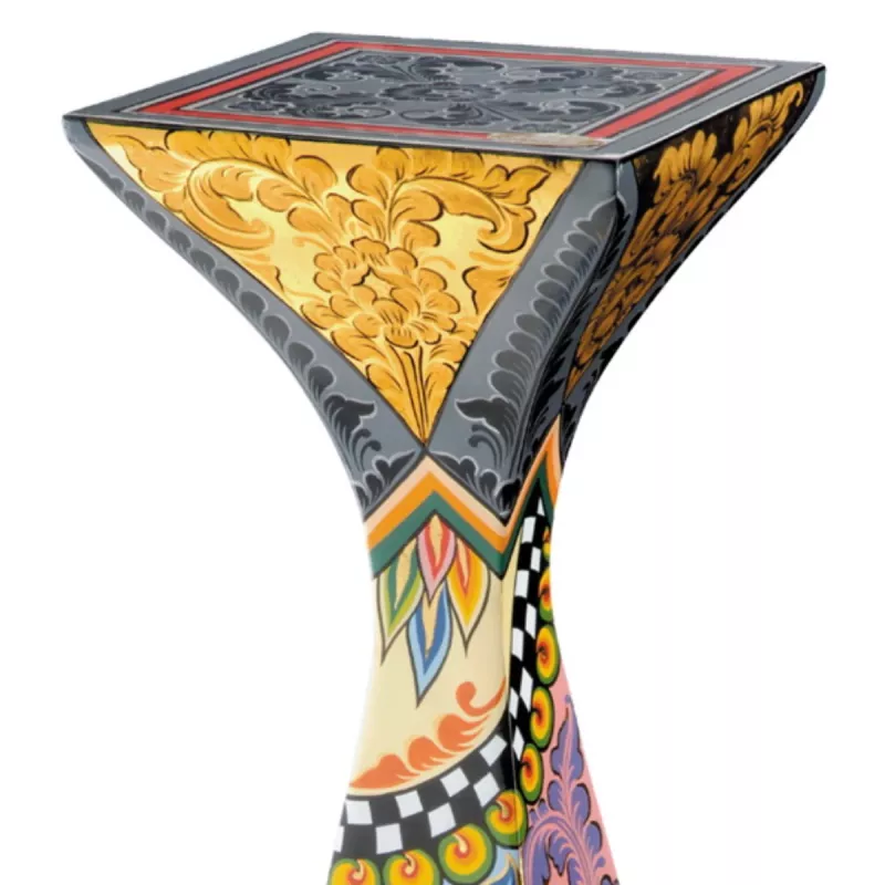 Kolonnen har en höjd på 81 cm och en toppyta på 27x27 cm, vilket gör den perfekt som piedestal, blomsterbord eller sidobord. Varje sida är unikt handmålad med olika karakteristiska Toms Drag-mönster och färger, vilket ger möbeln en livfull och konstnärlig känsla.