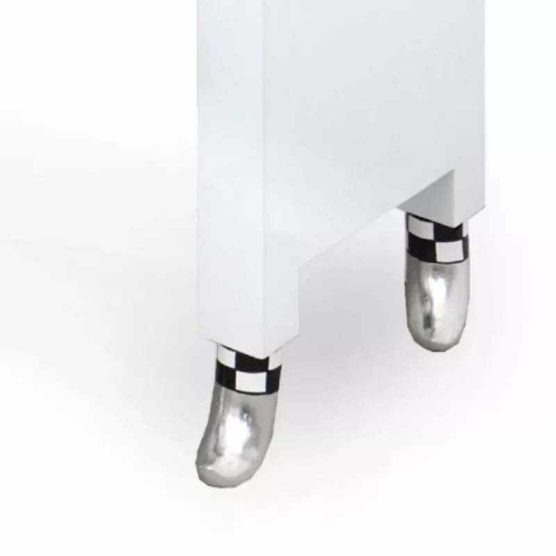 Denna möbel ingår i Silver Line-kollektionen, som kombinerar vitt, svart och silver med handmålade detaljer i blått, grönt och lila. Perfekt för dig som vill ha en modern och lekfull inredning med konstnärlig touch.