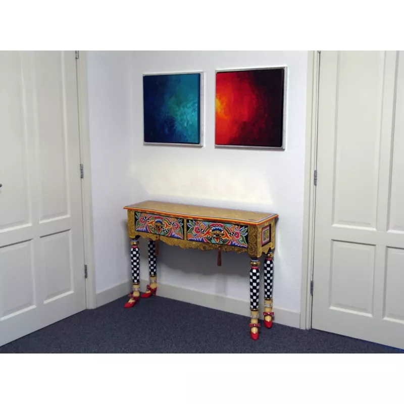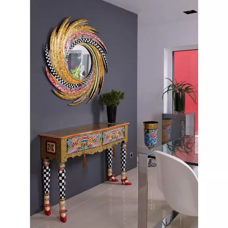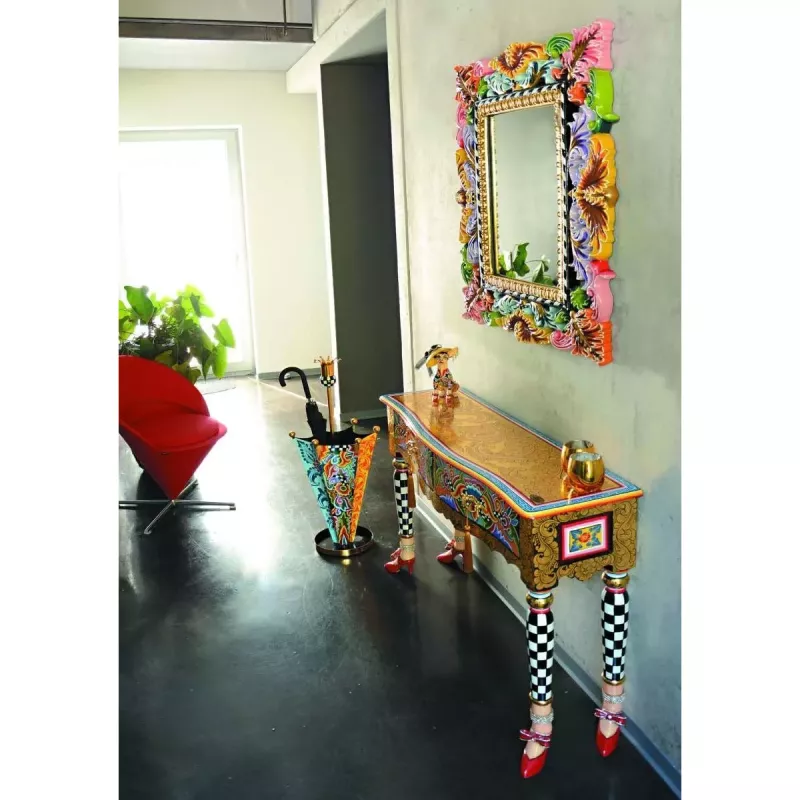 Med Console Table 'Versailles' får du inte bara en praktisk möbel utan även ett konstverk som speglar din unika stil. Den färgglada och iögonfallande designen gör det enkelt att skapa en personlig och livfull atmosfär i ditt hem.