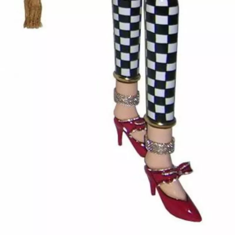 Signaturstil: De svartvita rutmönstrade benen och de ikoniska gulddetaljerna är typiska kännetecken för Toms Drags design.