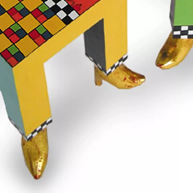 🔹 Lyxig & Lekfull Design: De gyllene skorna och färgstarka detaljerna gör dessa bord till unika konstföremål.