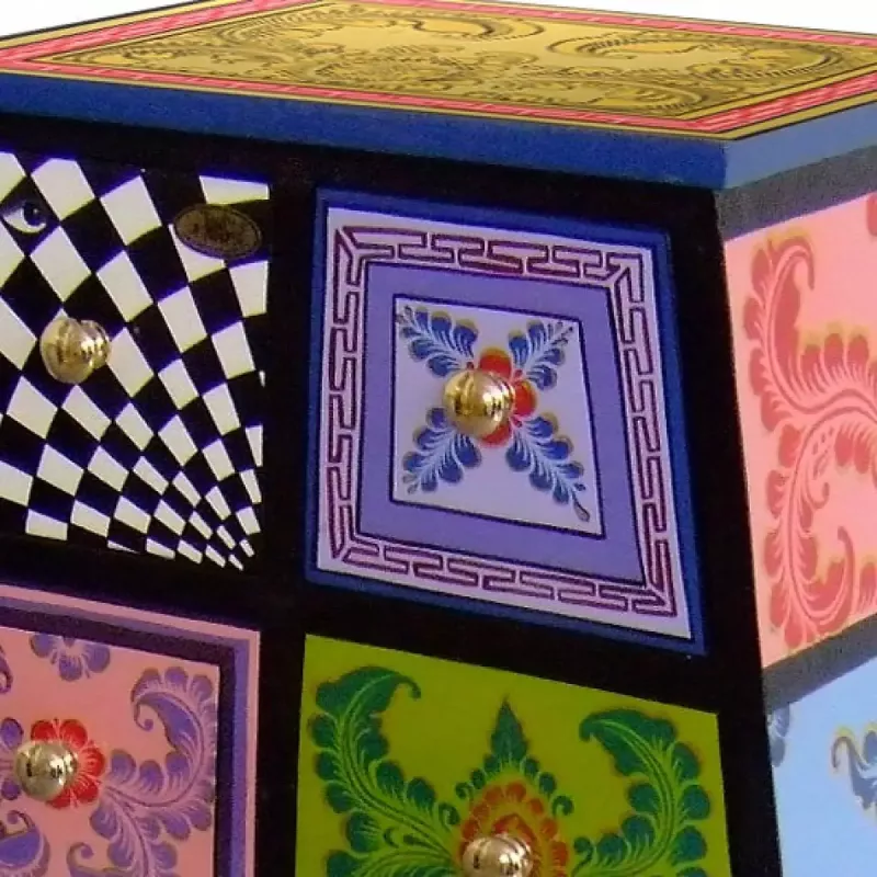 Drag Cabinet Jamaica är inte bara en möbel – det är ett konstverk som skapar en färgstark och inspirerande atmosfär. Perfekt för att framhäva din personliga stil och ge ditt hem en livfull och tropisk känsla.