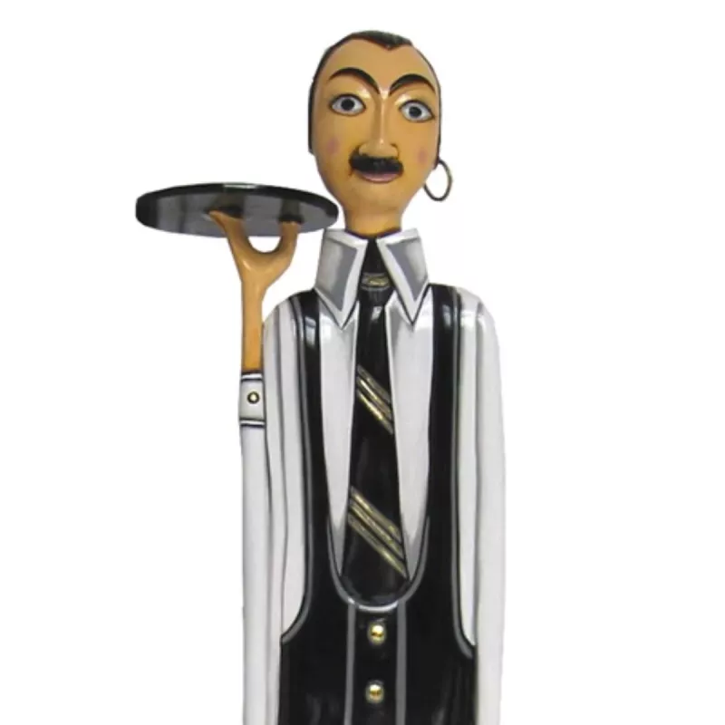 Handgjord Skulptur som Förhöjer Din Inredning med Karaktär och Humor - Letar du efter en unik och iögonfallande inredningsdetalj som kombinerar konst, humor och elegans? Toms Drag Steward S Arnaud 101706 från det välkända varumärket Toms Drag är en exklusiv handgjord skulptur som ger ditt hem, restaurang eller företag en färgstark och karaktärsfull touch. Med sin imponerande höjd på 145 cm och detaljrika design blir denna servitörsstaty en blickfångare som skapar en välkomnande och minnesvärd atmosfär.