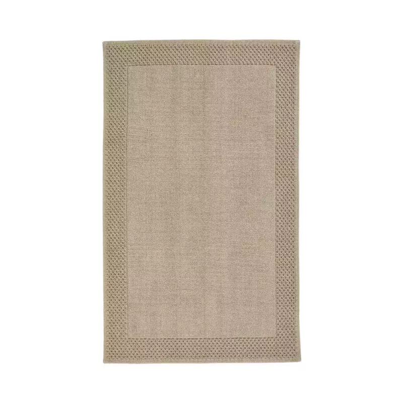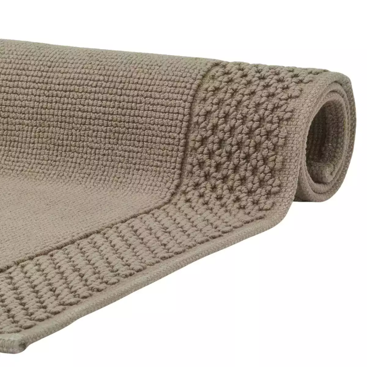 De små öglorna i bomullen ger en mysig textur och en skön känsla under fötterna, medan den dekorativa bården runt kanten ger mattan ett unikt och stilrent utseende som lyfter hela badrummets intryck.