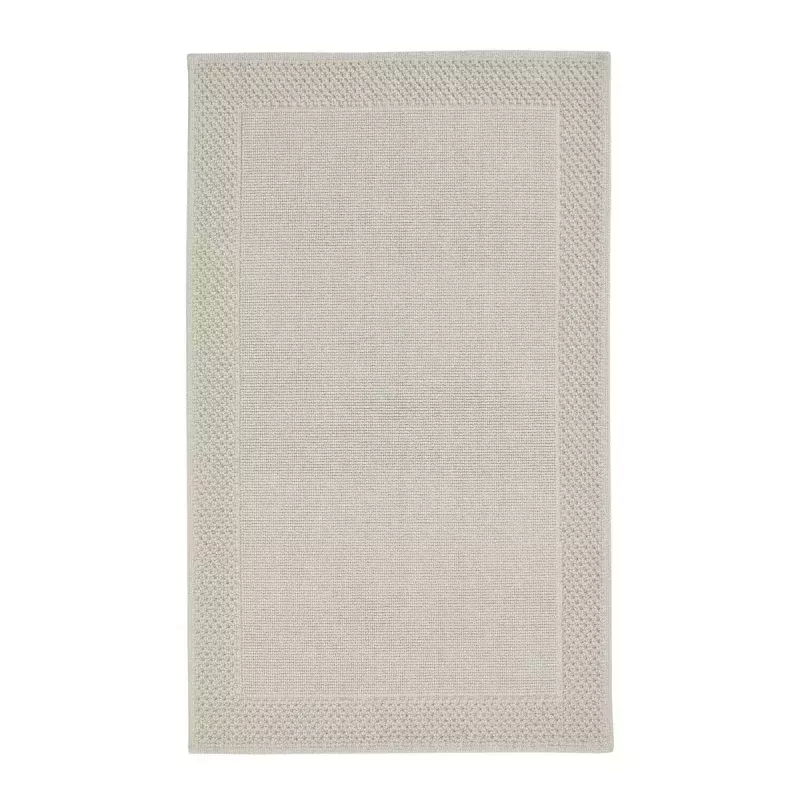 De små öglorna i bomullen ger en mysig textur och en behaglig känsla under fötterna, medan den dekorativa bården runt kanten skapar ett unikt och elegant utseende som lyfter helhetsintrycket i badrummet.
