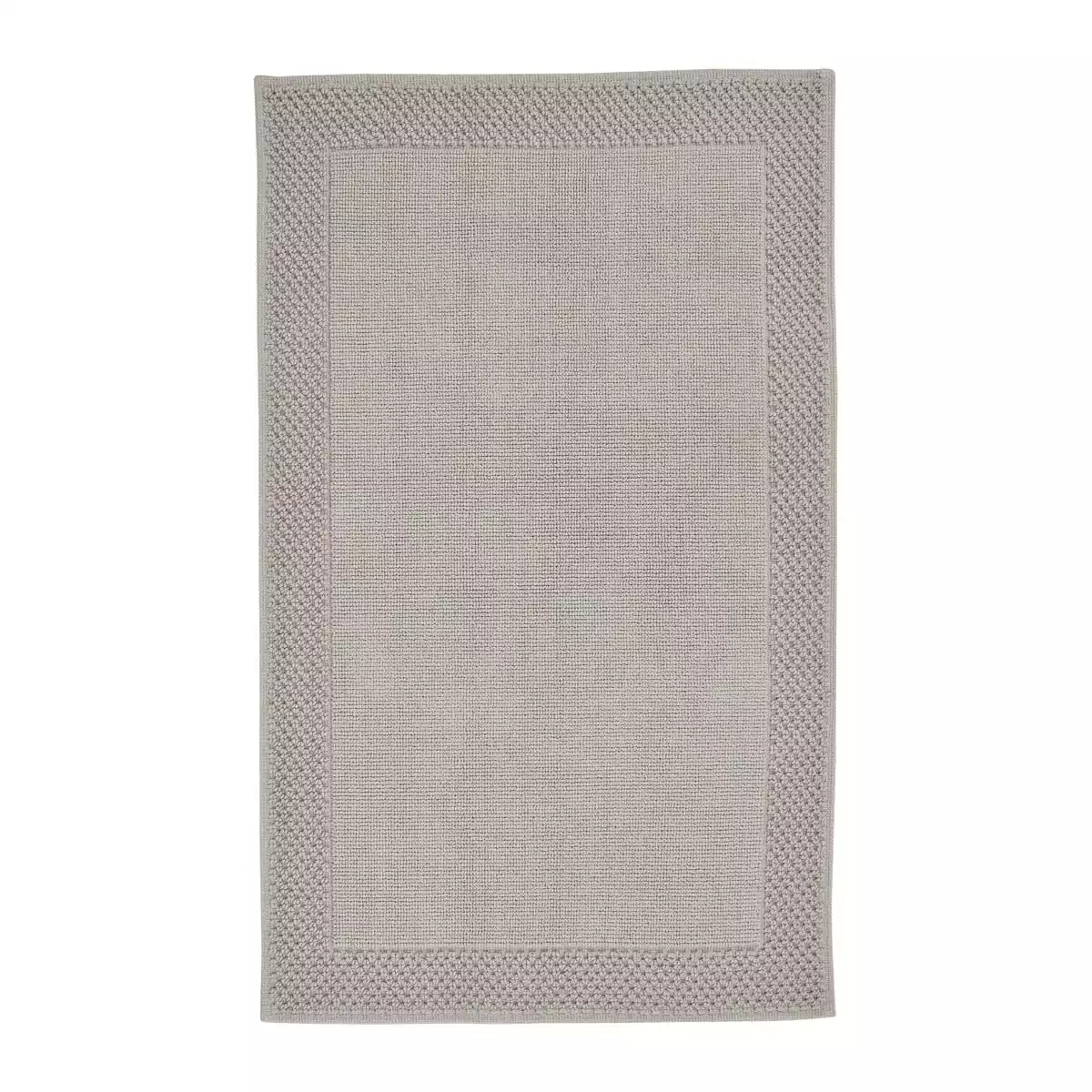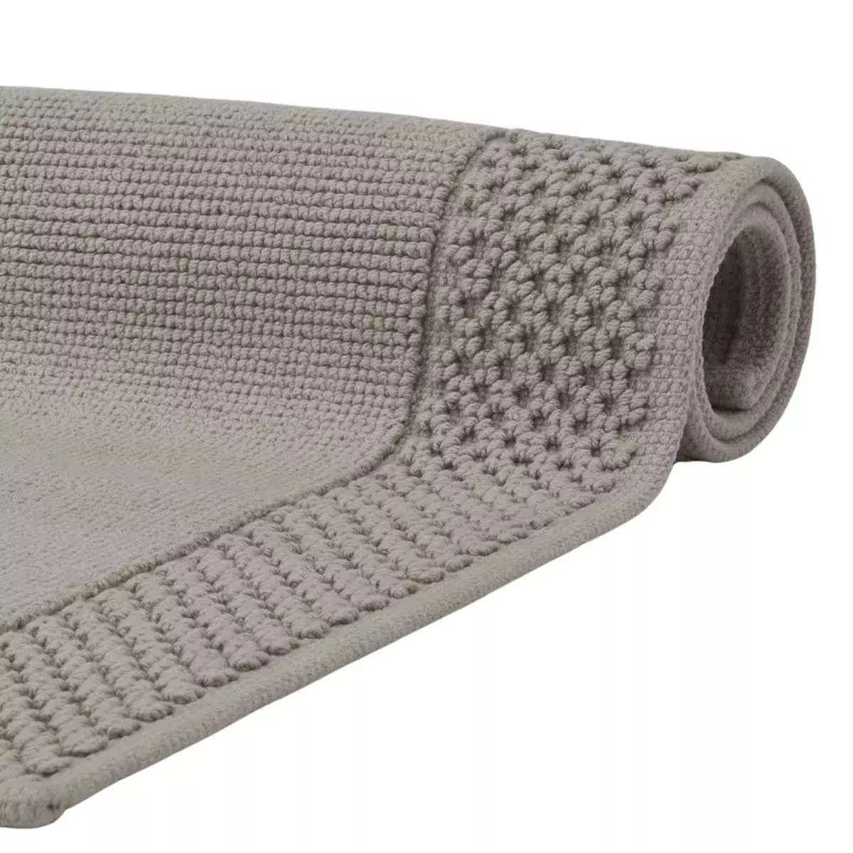 De små öglorna i bomullen skapar en mysig textur och en behaglig känsla under fötterna, medan den dekorativa bården runt kanten ger mattan ett unikt och stilrent uttryck som lyfter hela badrummet.